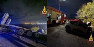 Ieri pomeriggio, mercoledì 27 novembre 2024, verso le ore 18.00, due squadre dei Vigili del Fuoco del Comando provinciale di Caserta, una proveniente dal distaccamento di Aversa e una proveniente dal distaccamento di Marcianise, sono intervenute sulla SS 335, tra Marcianise e l’uscita di Gricignano di Aversa, per un incidente stradale. Giunti immediatamente sul posto i Vigili del Fuoco hanno constatato che un autoarticolato, per cause ancora da accertare, ha invaso la corsia opposta scontrandosi con un’automobile che procedeva nel senso opposto e finendo la sua corsa, insieme all’automobile, nella scarpata adiacente l’asse stradale. I Vigili del Fuoco subito hanno soccorso l’occupante dell’automobile, un giovane di 29 anni, liberandolo dalle lamiere ed affidandolo alle cure del 118 presente sul posto, che, purtroppo, non ha potuto fare altro che constatarne il decesso. Feriti i due occupanti del mezzo pesante. Sul posto è intervenuta anche un’autogrù dal Comando di Napoli per dare supporto nelle operazioni di soccorso.